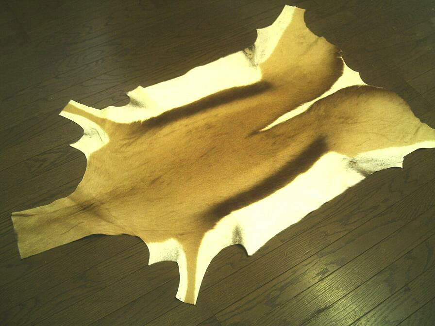 スプリングボックラグ■約114×69cm■SPRINGBOK♯A剥製革■玄関マットサイズ価格: 10,000円レビュー評価: 0.0 レビュー数:0 正規品:新品:学名「Antidorcas marsupialis」存在感があり、形が良く、全体が柔毛。モダン空間には欠かせない逸品。本場ナミビアより輸入した本物のスプリングボック毛皮です。■生息地はアンゴラ、ナミビア、ボツワナ、南アフリカ共和国。特徴として眉間と背面は褐色、顔、腹部や四肢の大腿部内側は白い体毛で覆われる。眼から吻端、体側面、尾の先端には濃褐色の体毛が生えるなどの特徴としてあげられます。◆動物固有の生体キズ・修復痕・自然劣化等は多少ございます。ですがしっかりナメシてあります。◆一頭物で1つ1つ柄が違い、同じ物は一つとして一切ございませんので、天然素材になります。世界に貴女だけのコ |